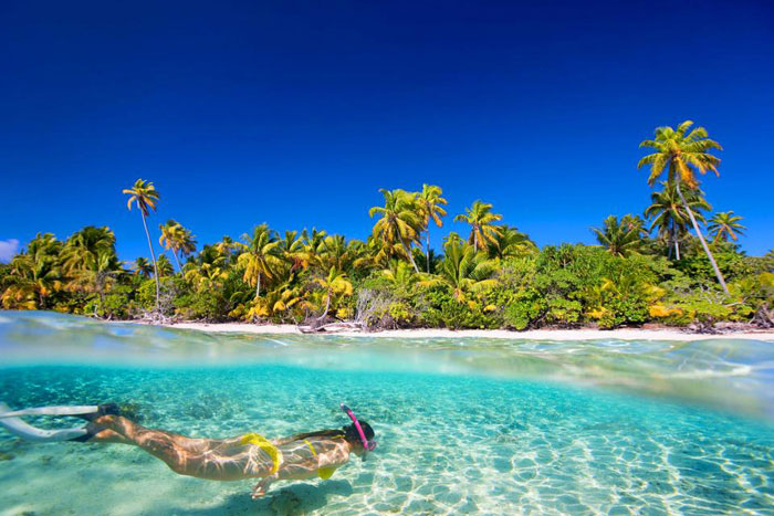 Esta famosa playa está considerada una de las más bonitas del mundo. Es de arena blanca y fina y agua cristalina con un tono turquesa expectacular. Aquí podemos encontrar los famosos "overwaters", hoteles normalmente de lujo situados encima del mar.